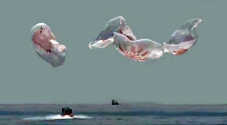 Regresa con éxito cápsula espacial y aterriza en Golfo de México