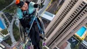 Lai Chi-wai se convirtió en el primero en Hong Kong en escalar más de 250 metros de un rascacielos mientras estaba atado a una silla de ruedas mientras se levantaba durante más de 10 horas el sábado para recaudar fondos para pacientes de médula espinal. El escalador de 37 años, cuyo accidente automovilístico hace 10 … Sigue leyendo En silla de ruedas, Lai Chi-wai escala a rascacielos en Hong Kong