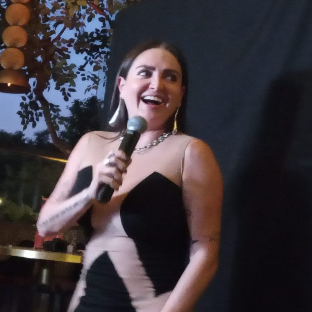 Candente y picaresca resultó la conversación con los medios de comunicación cuando dio a entender que prefería estar sin ropa frente a todos , pues ahora ya no se siente nada cómoda con ropa, pues le gusta más su cuerpo al natural.