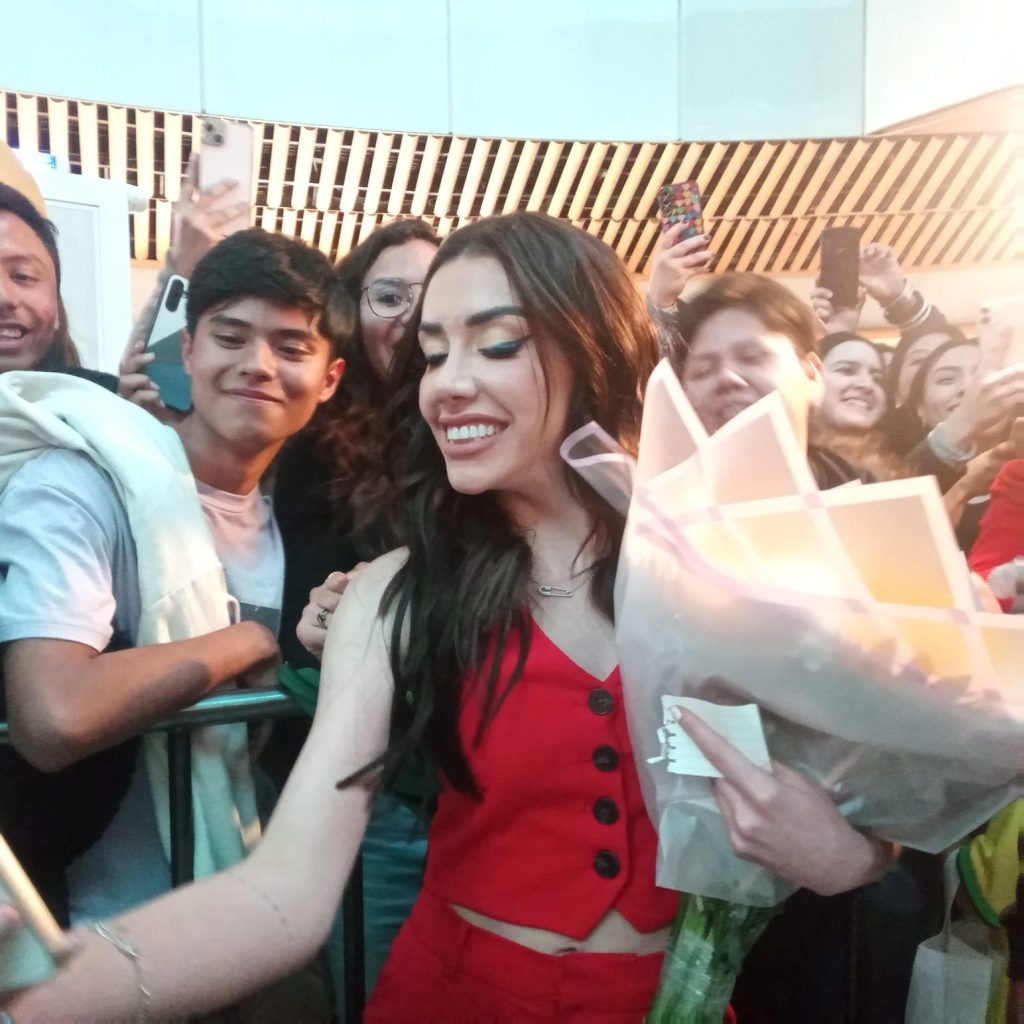 Posteriormente, dio unas palabras de agradecimiento al público por apoyarla y acompañarla al encendido del Árbol de Navidad, para así, hacer una cuenta regresiva hasta que el árbol brilló y la nieve cayó desde lo más alto de Manacar.