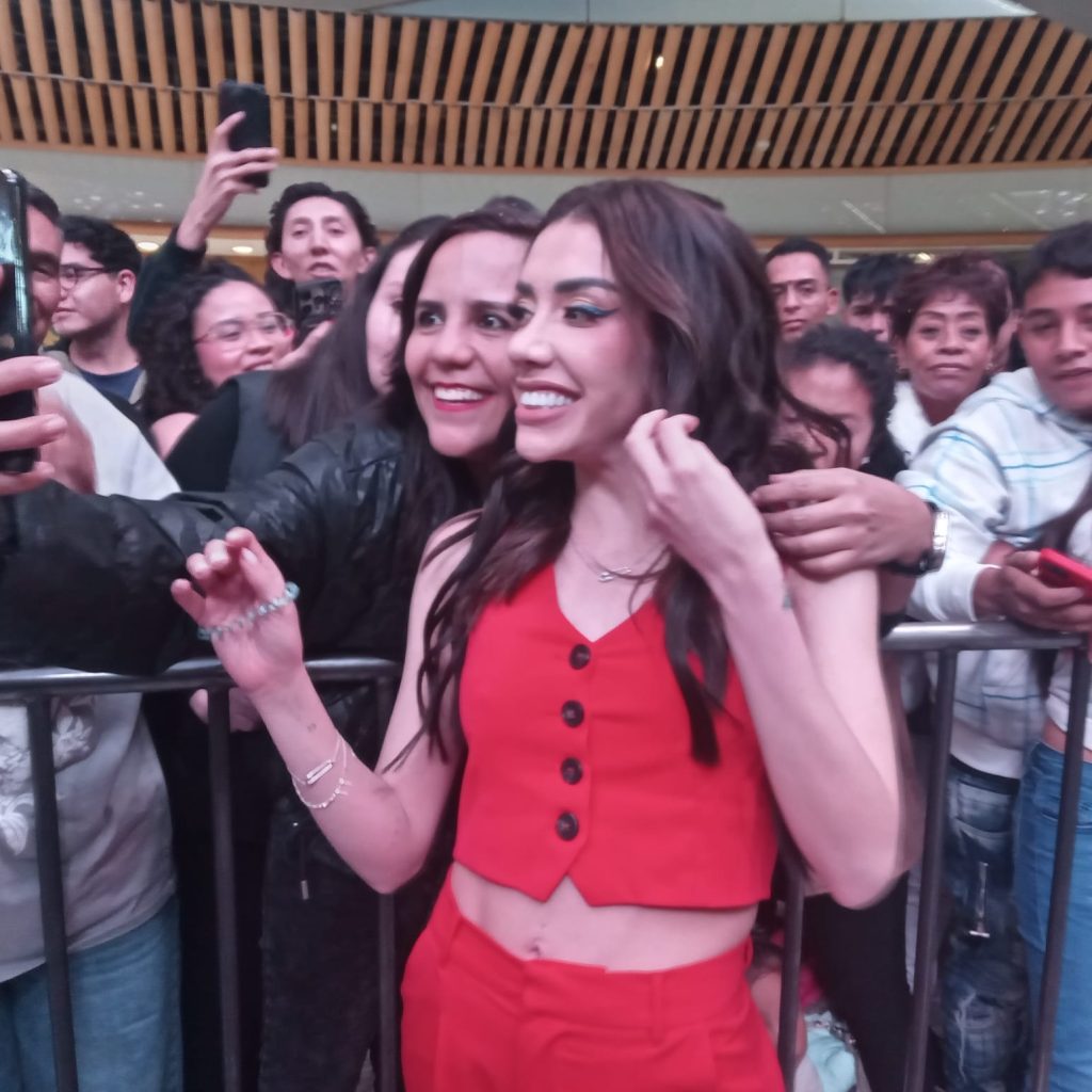 La ex integrante de la “Casa de los Famosos México 2”, pasó a tomarse fotos con todas las personas que se encontraban alrededor del árbol de navidad.