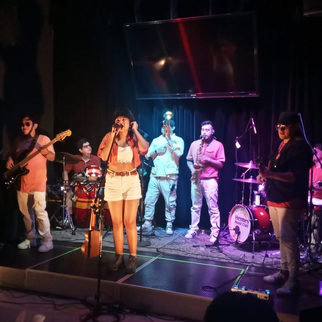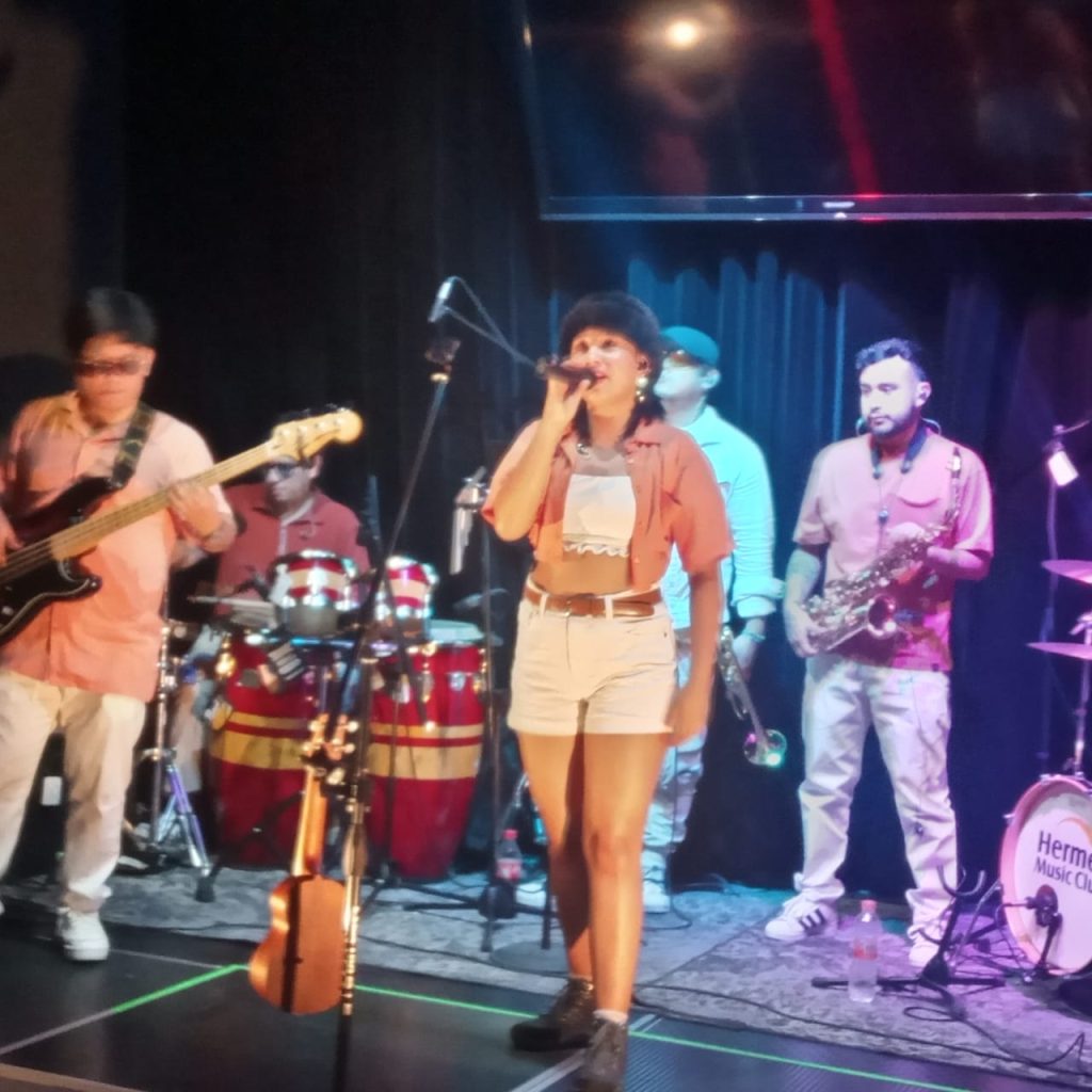 La joven interpretó «Montaña Rusa», «Libre», «Todo está bien» entre otras composiciones, acompañada de su banda en un ambiente agradable.