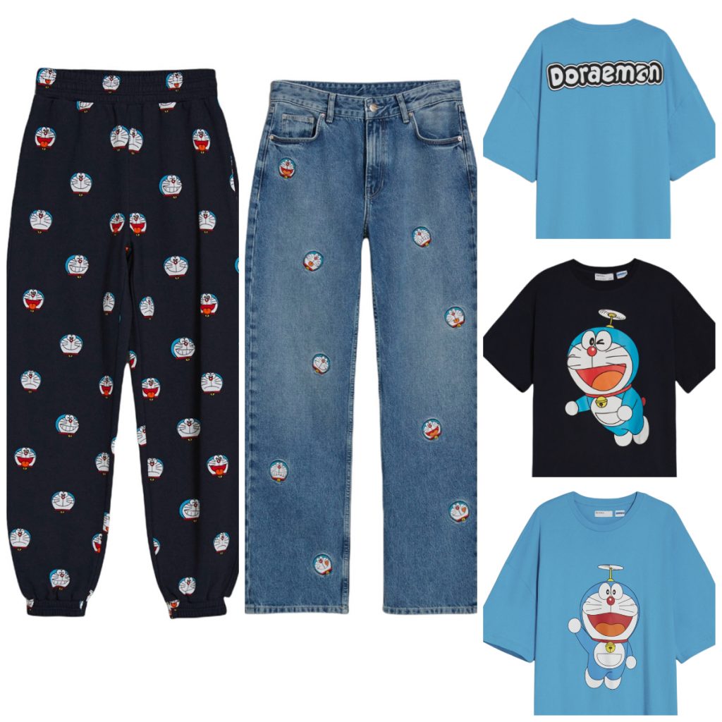 El entrañable personaje de ficción de la mundialmente conocida serie de anime homónima se cuela en una selección de prendas y accesorios tanto para él como para ella. Las siluetas son relajadas y los tonos suaves, siendo el lila y el característico azul Doraemon los colores que conquistan este nuevo lanzamiento lleno denostalgia.