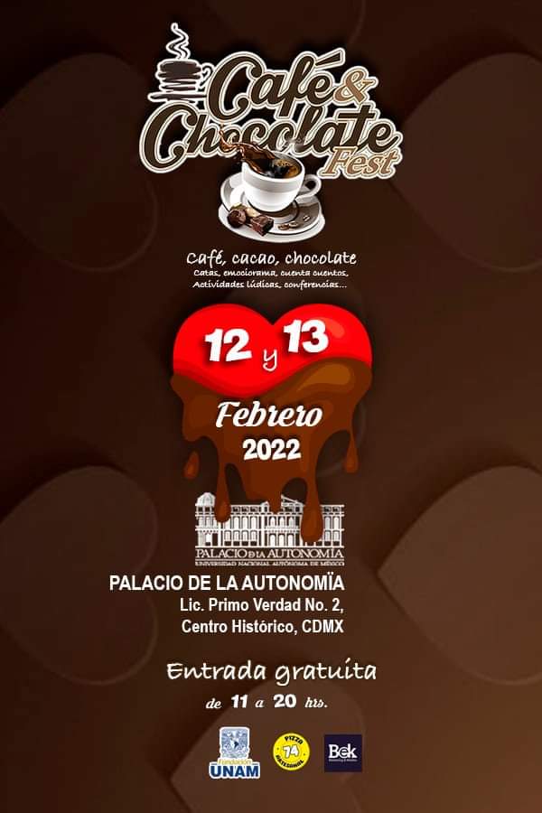 CAFÉ & CHOCOLATE FEST regresa este 12 y 13 de Febrero al PALACIO DE LA AUTONOMÍA DE LA FUNDACIÓN UNAM,…