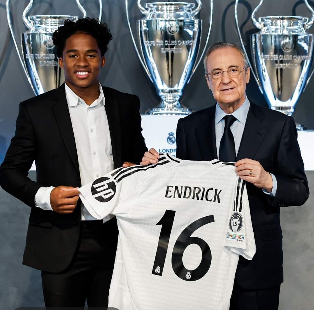El jugador brasileño Endrick Felipe, quien cuenta con 18 años fue presentado en el Estadio Santiago Bernabéu de manos del…