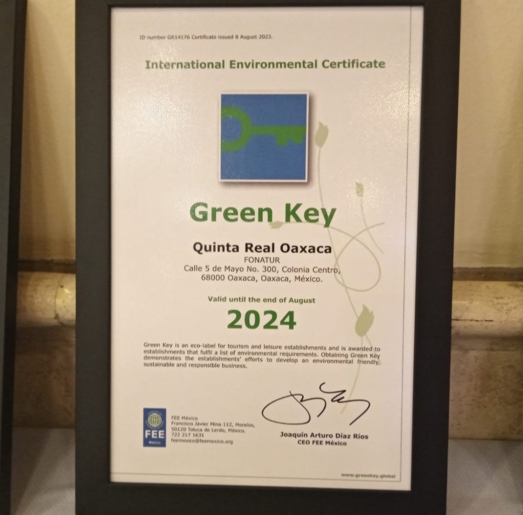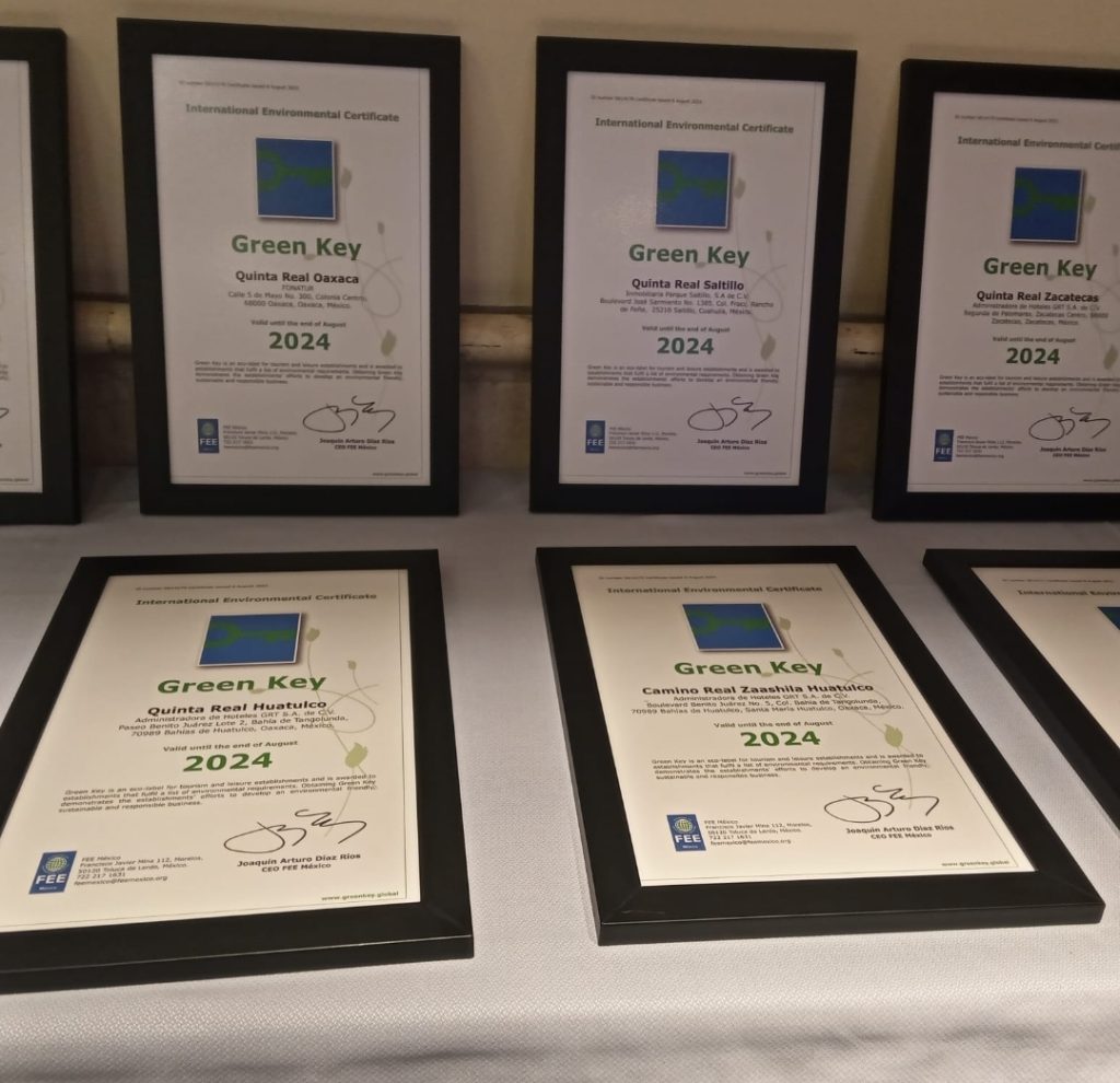 La cadena hotelera Camino Real recibió el miércoles el distintivo Green Key, reconocimiento internacional que se otorga a establecimientos turísticos que cumplen con criterios de sostenibilidad y responsabilidad social que se rigen bajo un sistema de gestión ambiental sostenible.